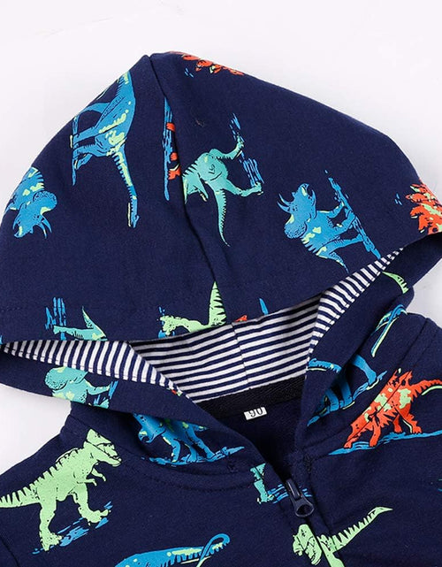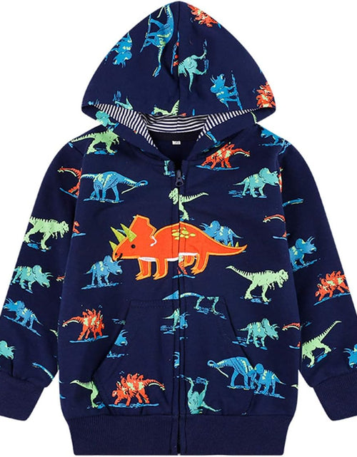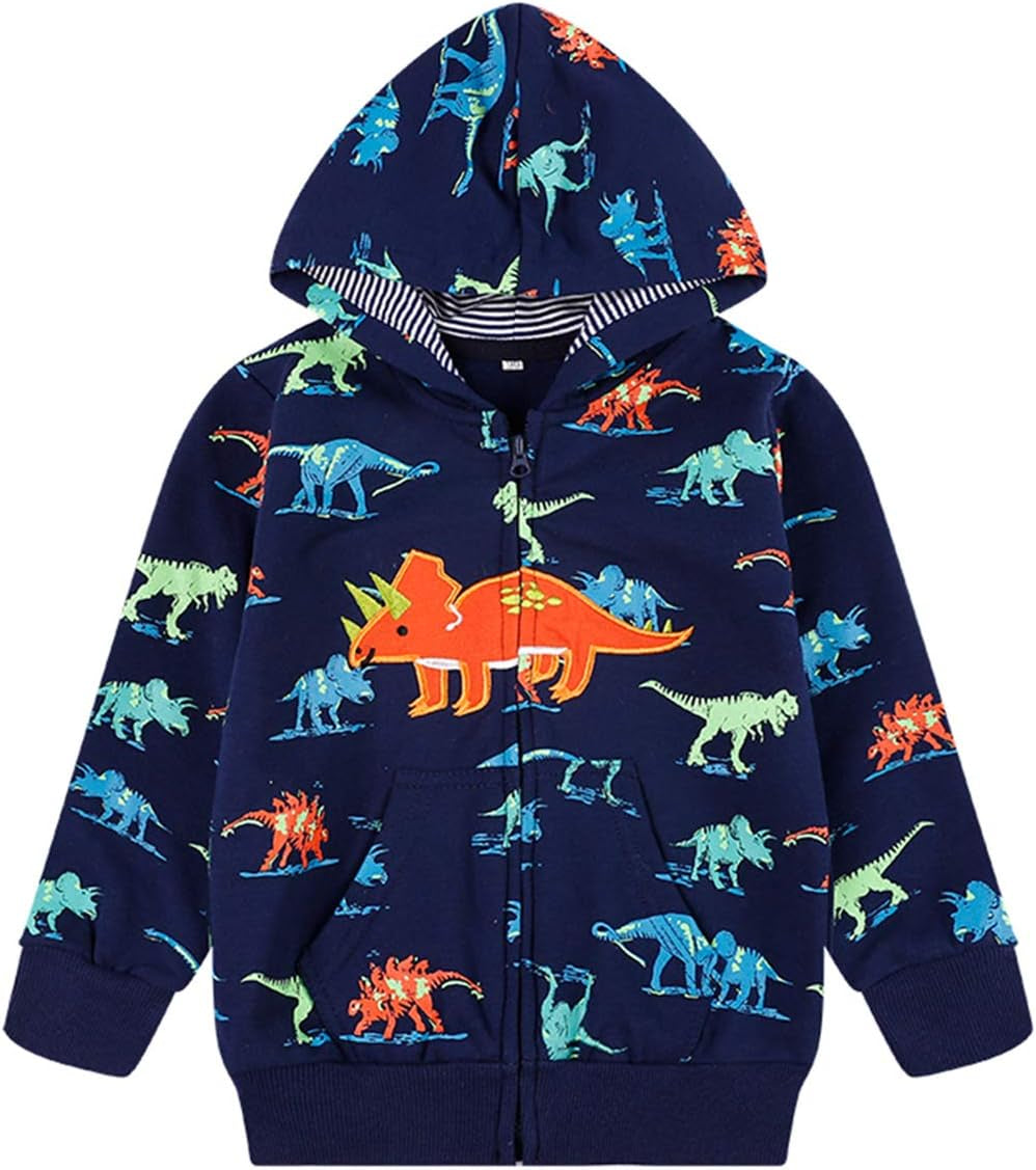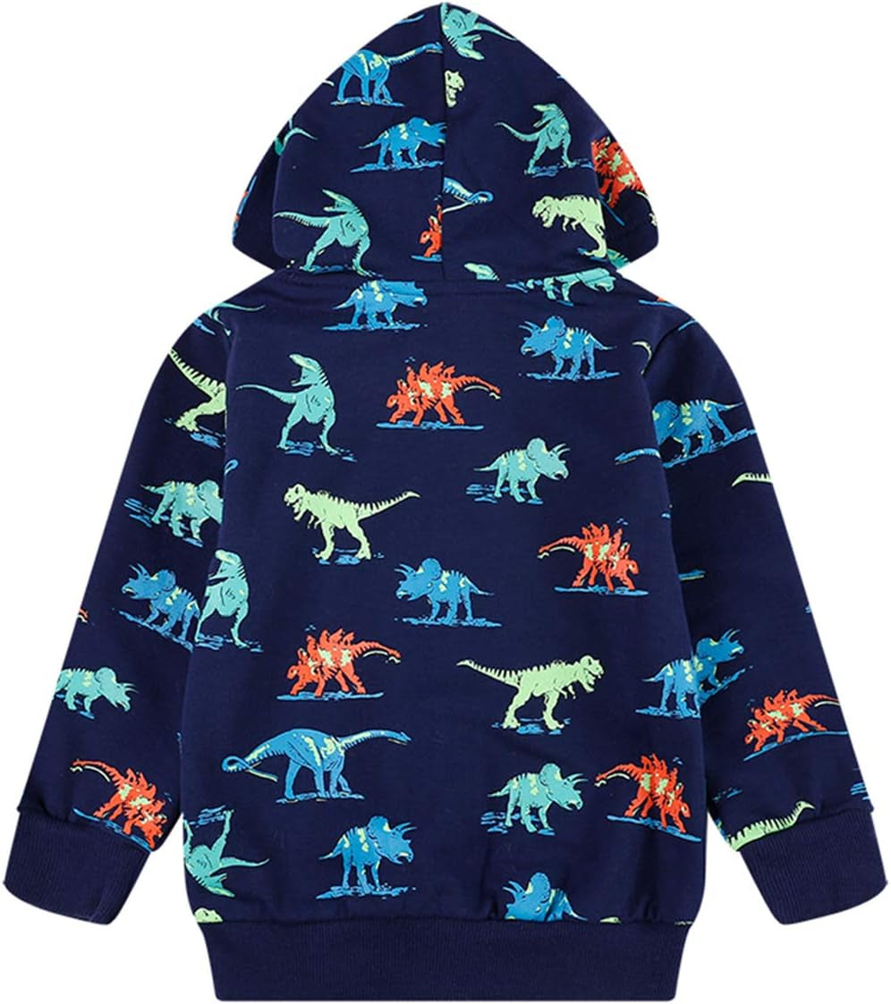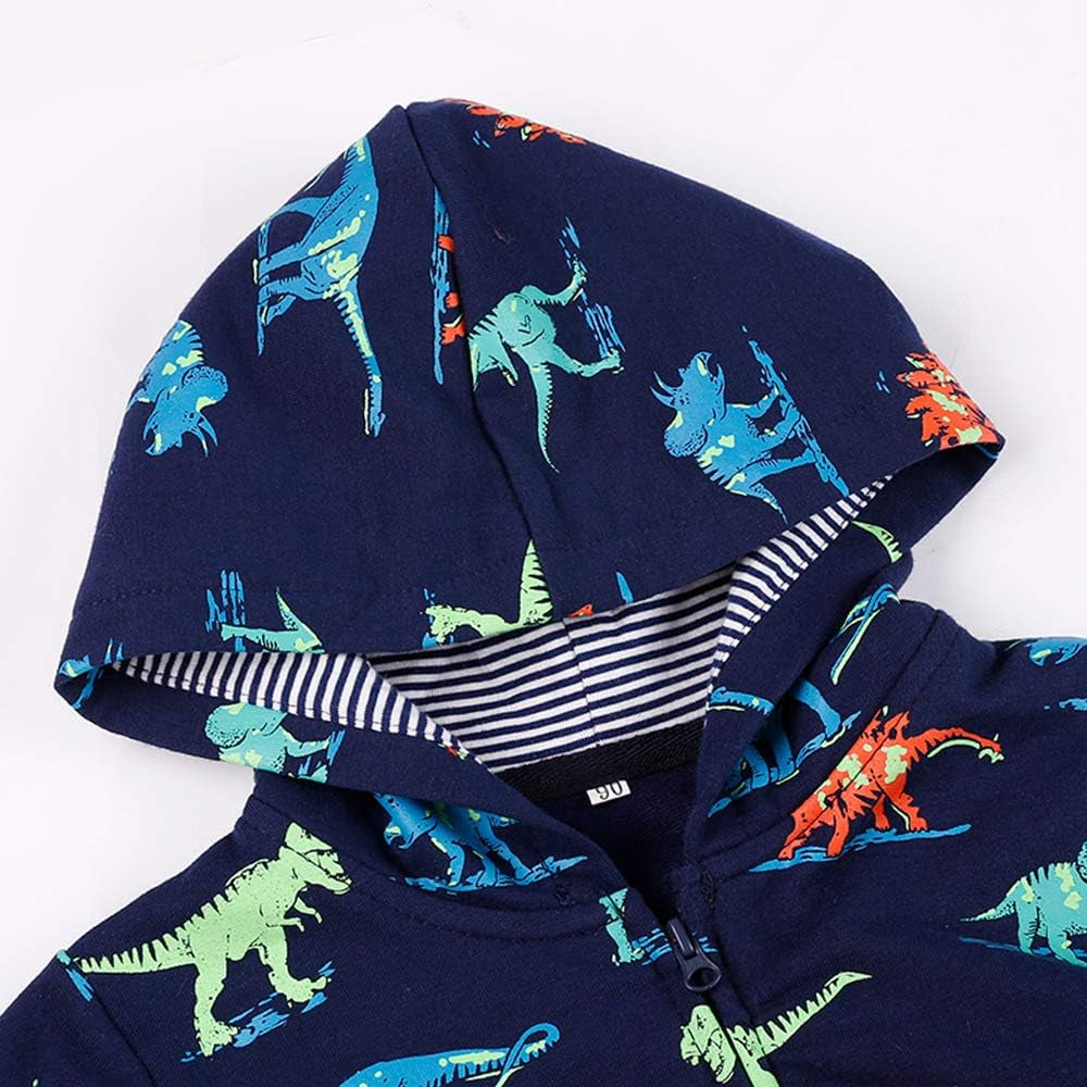 Boys Toddler Cartoon Dinosaur Hoodies Jacket Cool Long Sleeve Zipper Hooded Sport Sweatshirt Coat for Kids 1-7 Years